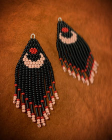 Jäde is an Algonquin and French artist based in Lillooet. They specialize in unique jewelry, blending in traditional elements and new age styles and imagery. Their tools of choice are beads, fur, leather, and resin.