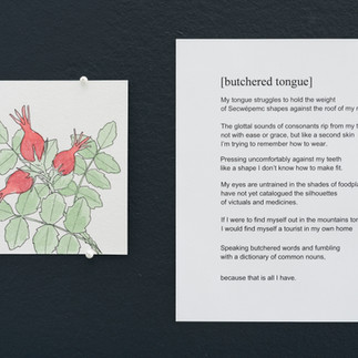 This exhibition was supported in part by the Kamloops Art Gallery (KAG), who provided 4 weeks of studio space and access to supplies and materials to the artists. Overall, the group exhibition met weekly for 8 weeks, where they worked on their art concepts and had discussions of their own experiences living in Kamloops.
